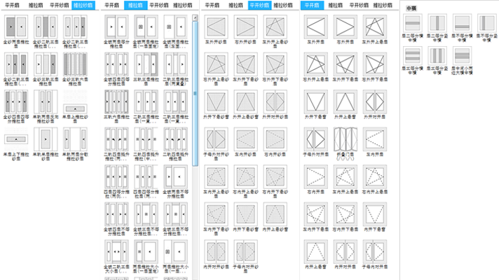 系統預設好門窗的外框,開啟扇,紗扇,鋁板,百葉,中梃等門窗設計常用元素,即點即用,無需基礎