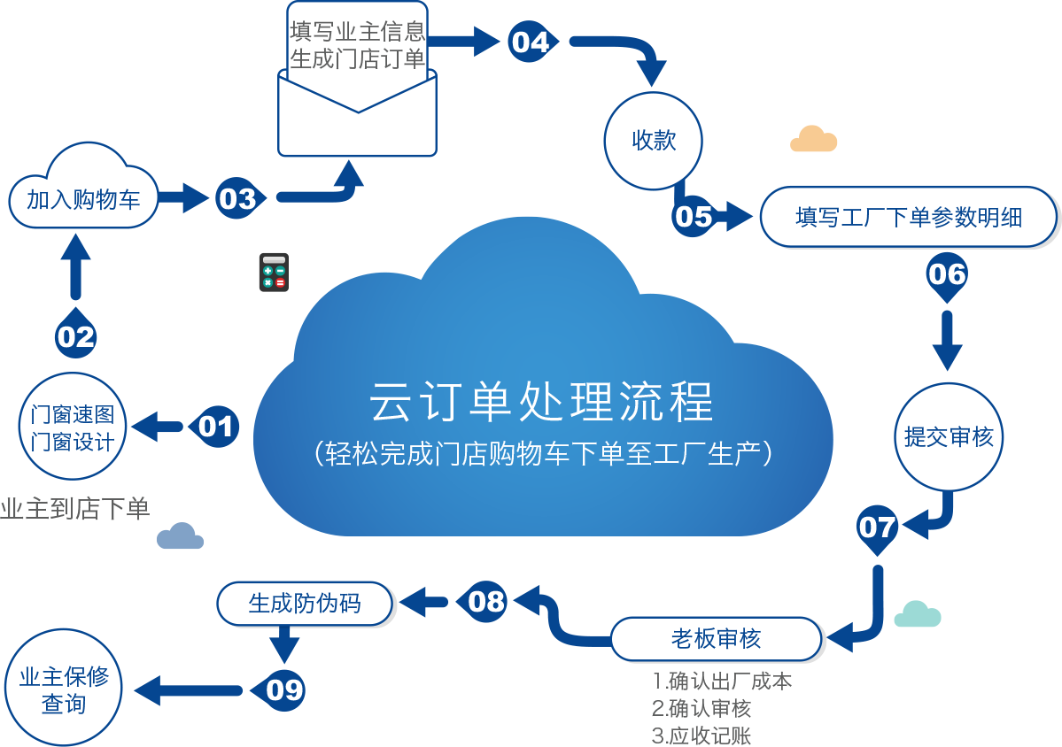 確認(rèn)后可直接通過云訂單管理中心下單至門窗廠,可查詢訂單信息,和工廠供貨價,以便核對訂單利潤和訂單結(jié)算。